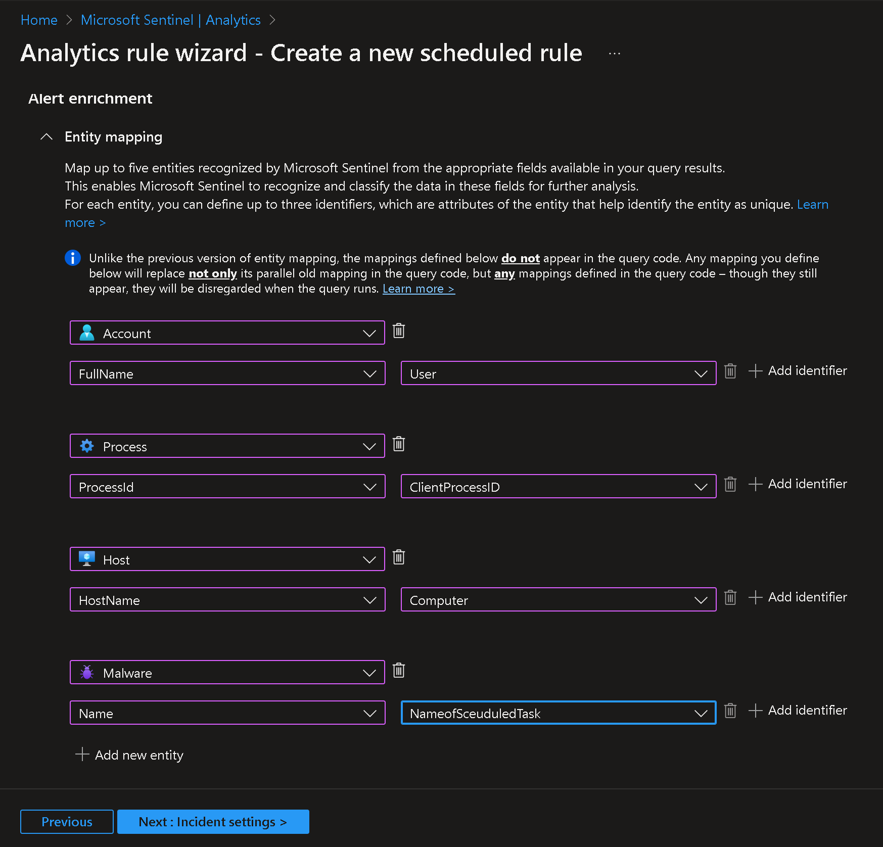 As opposed to having to query this data as we did in the analytic rule Alert Enrichment allows us to put the necessary data into the alert details as Entities so the analyst can begin investigating those specific components.