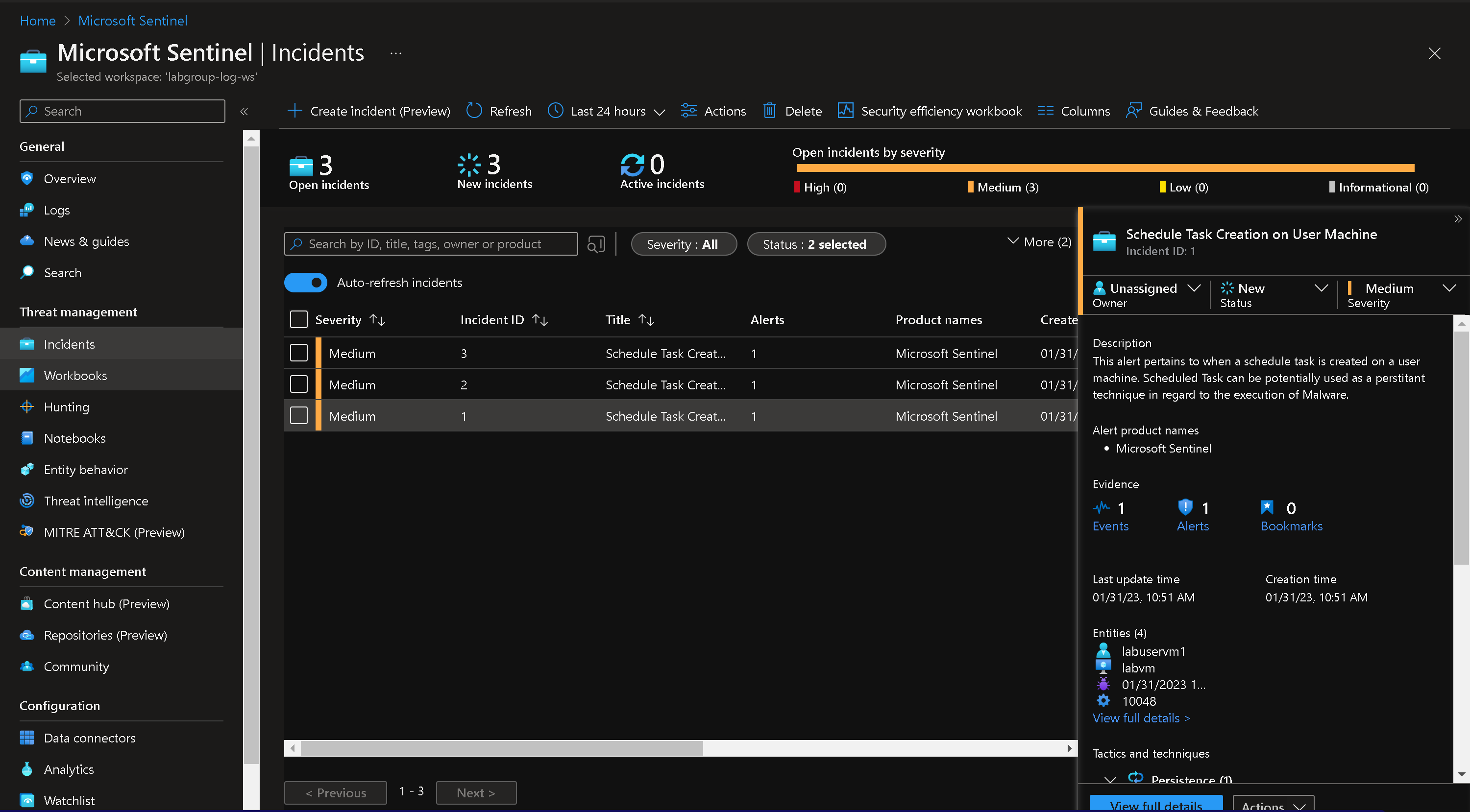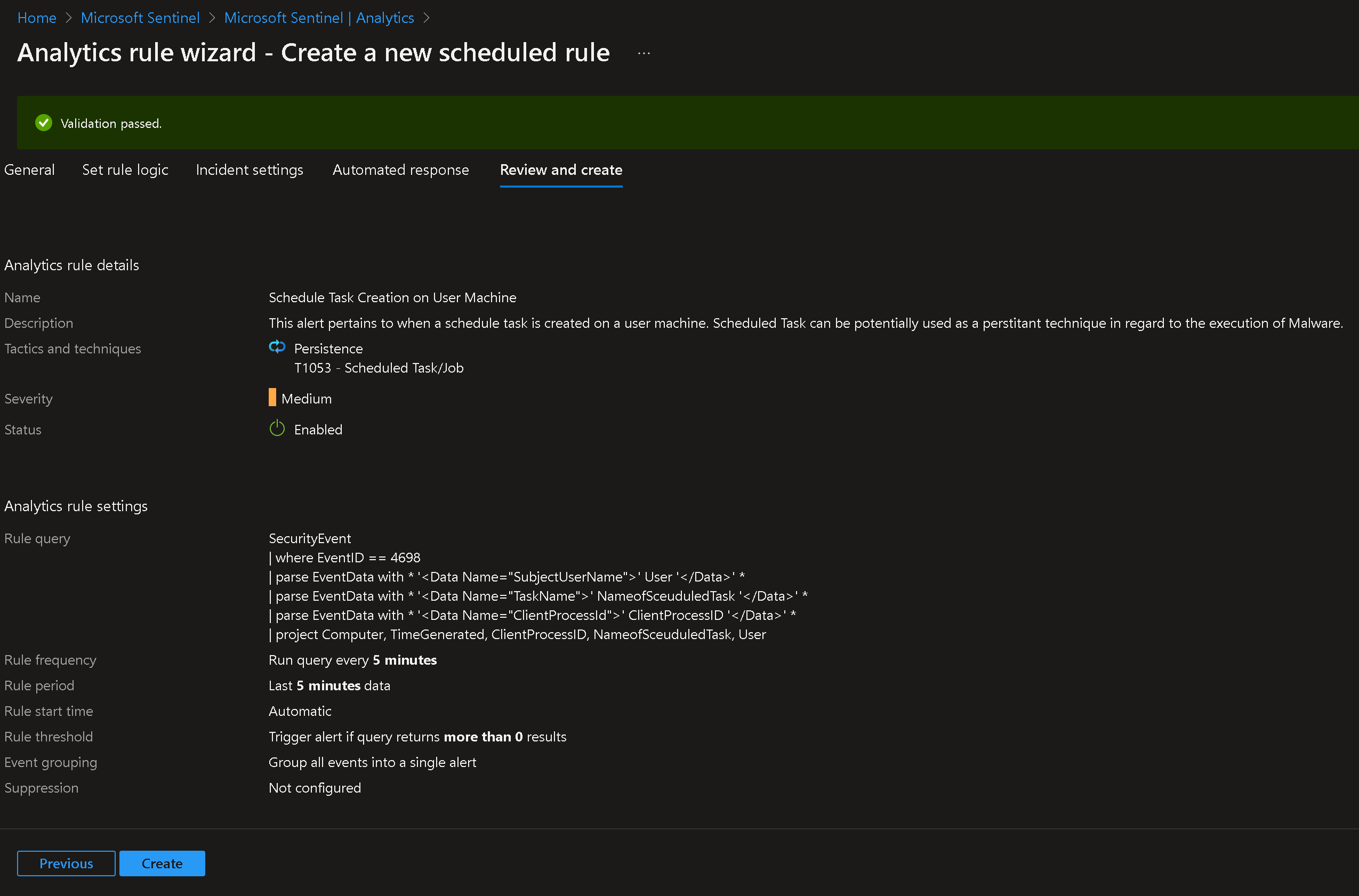 Once you create your analytic rule the final step is to create another scheduled task in your Windows VM and wait for the alert to trigger in Sentinel