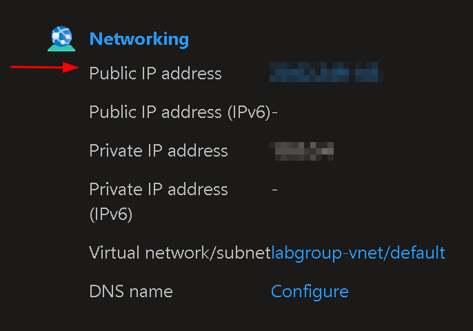 Note: You might need to refresh after starting the virtual machine to have the public IP show up.