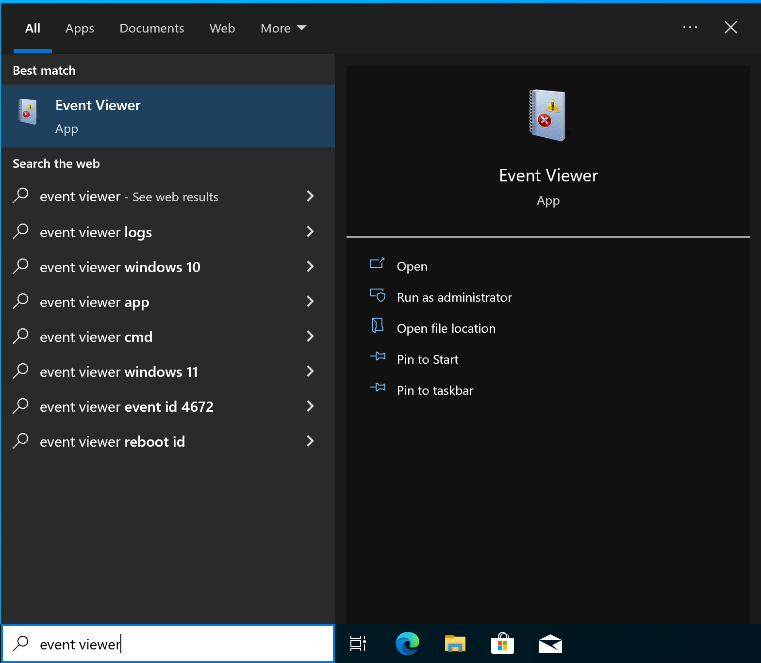 Once you successfully authenticate to the virtual machine and are logged in, search for Event Viewer and open the program.