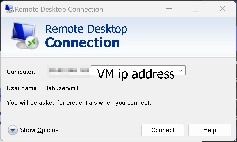 Under Networking, you are given a public IP. Use an RDP on your PC Client such as Remote Desktop Connection to access your VM by entering in the public IP address.