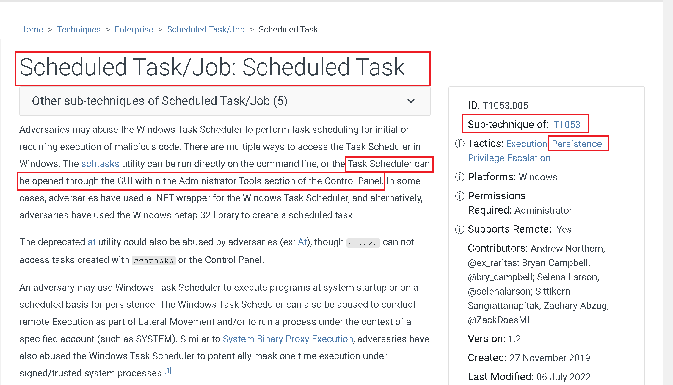 According to the MITRE Attack Framework, “Adversaries may abuse task scheduling functionality to facilitate initial or recurring execution of malicious code. Utilities exist within all major operating systems to schedule programs or scripts to be executed at a specified date and time”.