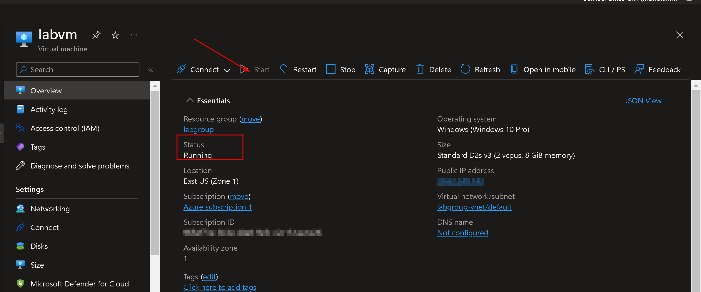 Utilize the Azure Portal to navigate to the VM created earlier in the lab.