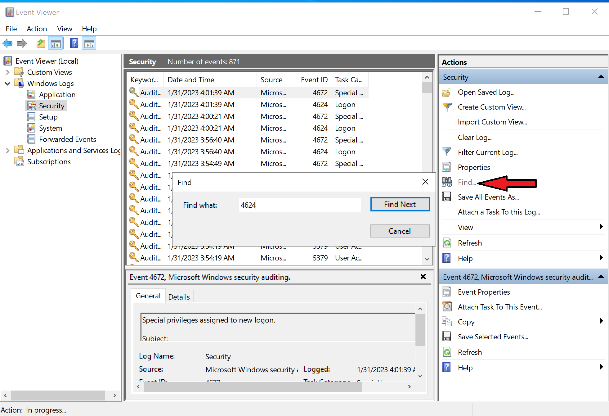 As you can see there are several security events in event viewer. Let’s drill into one of these events.