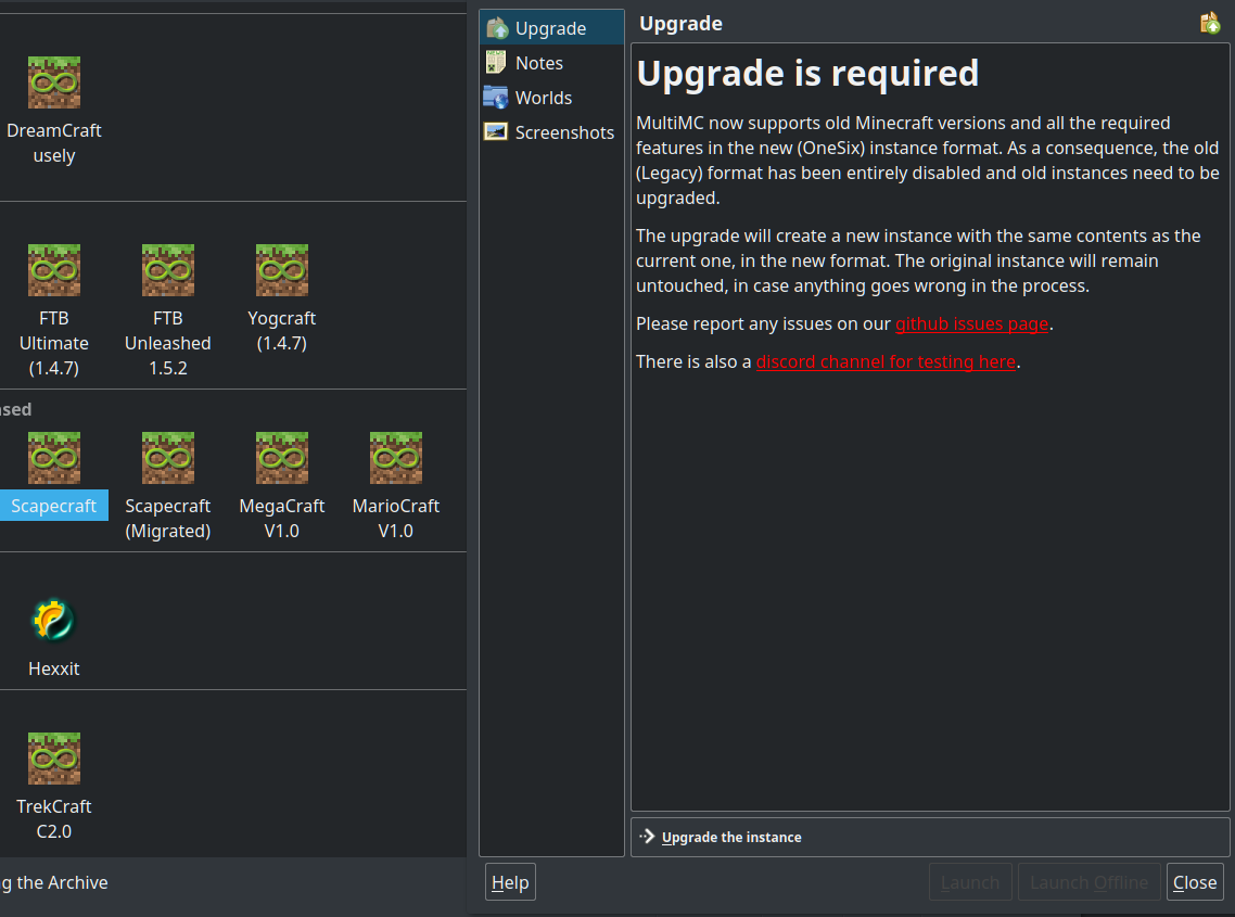 This lets you upgrade Legacy instances (from MultiMC 3 and 4) to the format used in MultiMC 5.