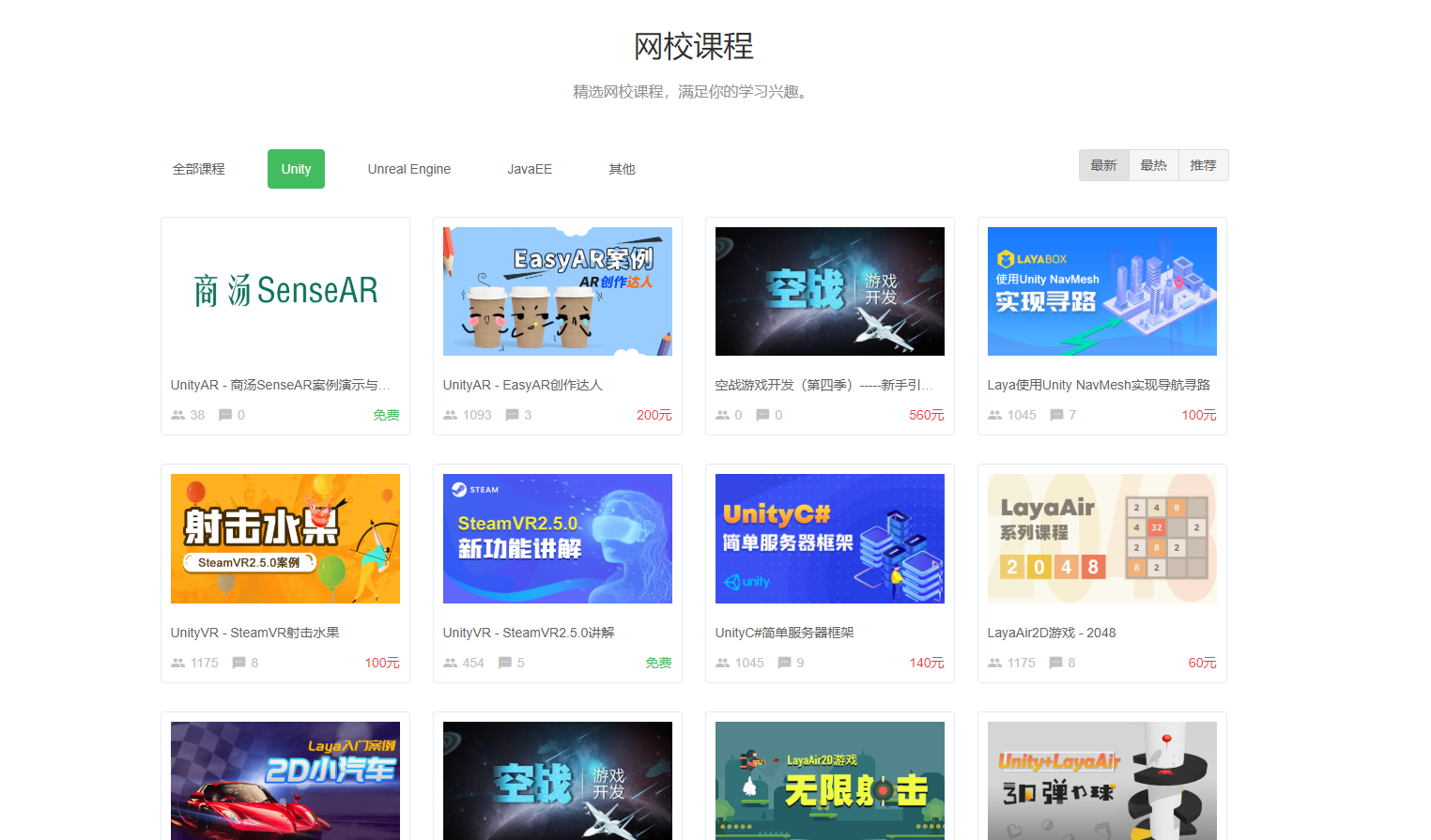 主要是针对游戏开发的教程,Unity,Cocos,UE4等,有免费也有收费的。