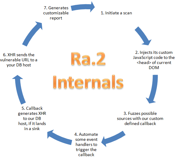 Ra.2 - Blackbox DOM-based XSS Scanner is our approach towards finding a solution to the problem of detecting DOM-based Cross-Site Scripting vulnerabilities in Web-Application automatically, effectively and fast. Ra.2 is basically a lighweight Mozilla Firefox Add-on that uses a very simple yet effective and unique approach to detect most DOM-based XSS vulnerabilities, if not all. Being a browser-add on it is a session-aware tool which can scan a web-application that requires authentication. Ra.2 uses custom collected list of XSS vectors which has been heavily modified to be compatible with its scanning technology. The add-on also implements basic browser intrumentation to simulate a human interaction to trigger some hard to detect DOM-based XSS conditions.